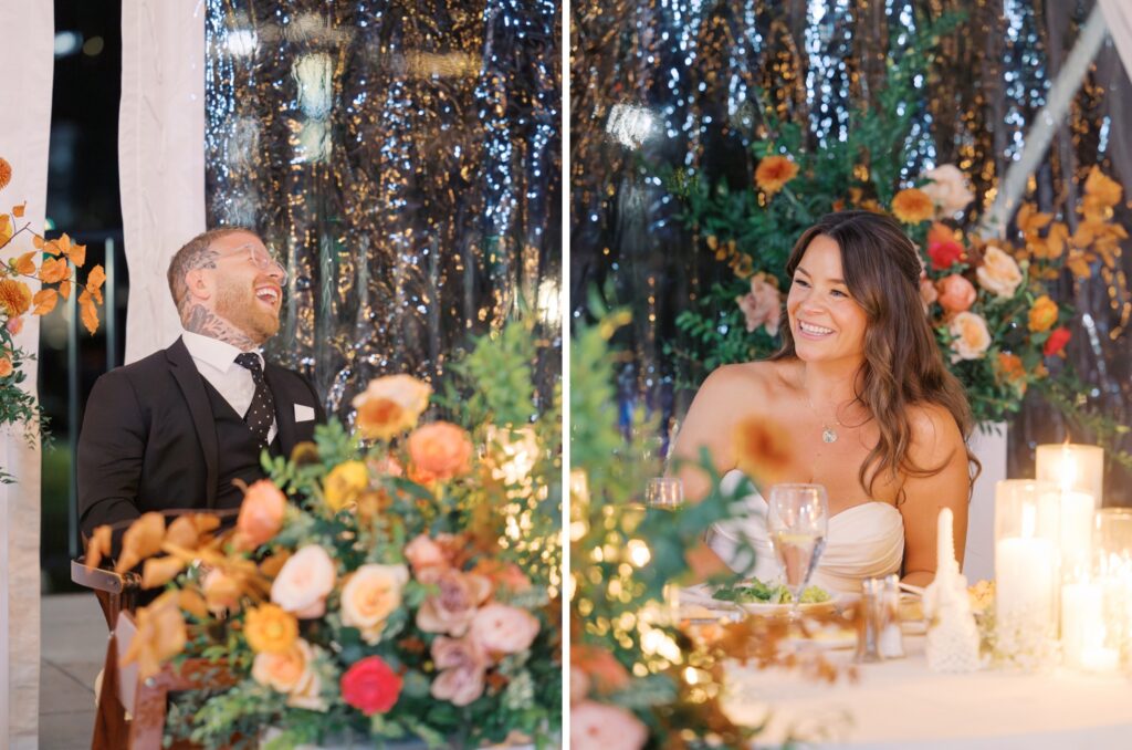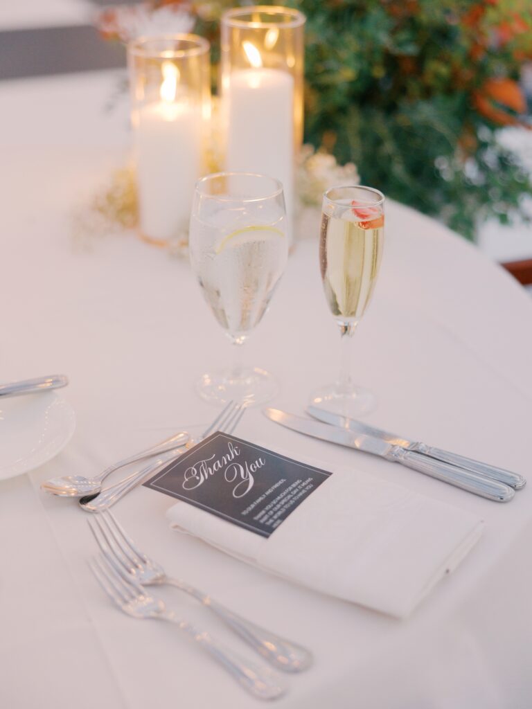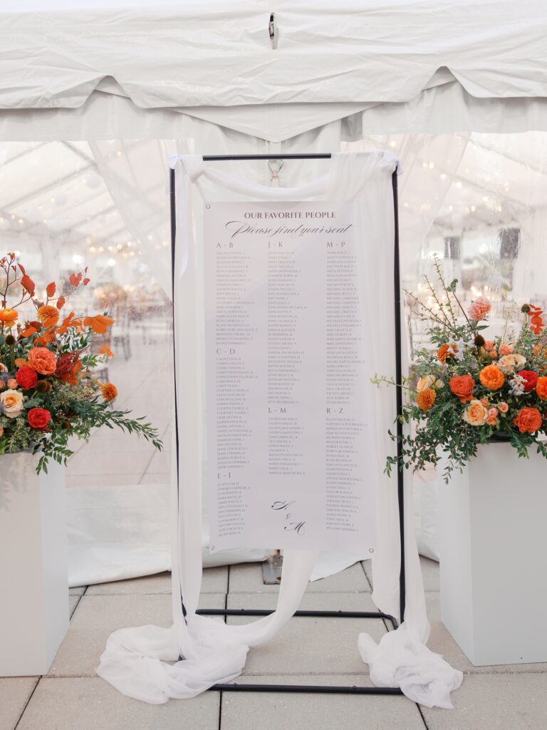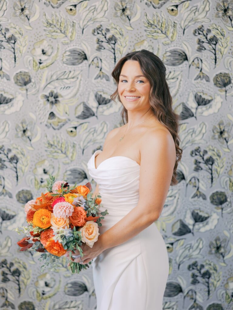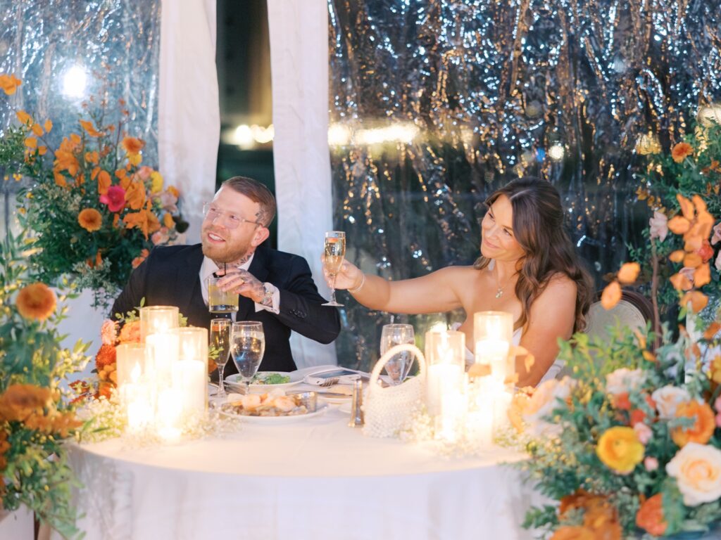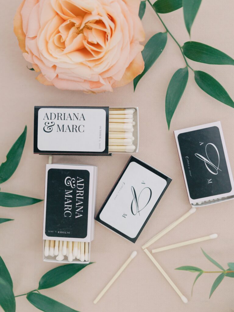 Adriana is a designer by trade, and her vision for the reception was thoughtful and intentional. Colorful floral arrangements paired with clean, modern design created a space that felt elevated yet inviting. Adriana designed her own paper goods, including the invitation suite, menus, custom matchbooks, and signage.
