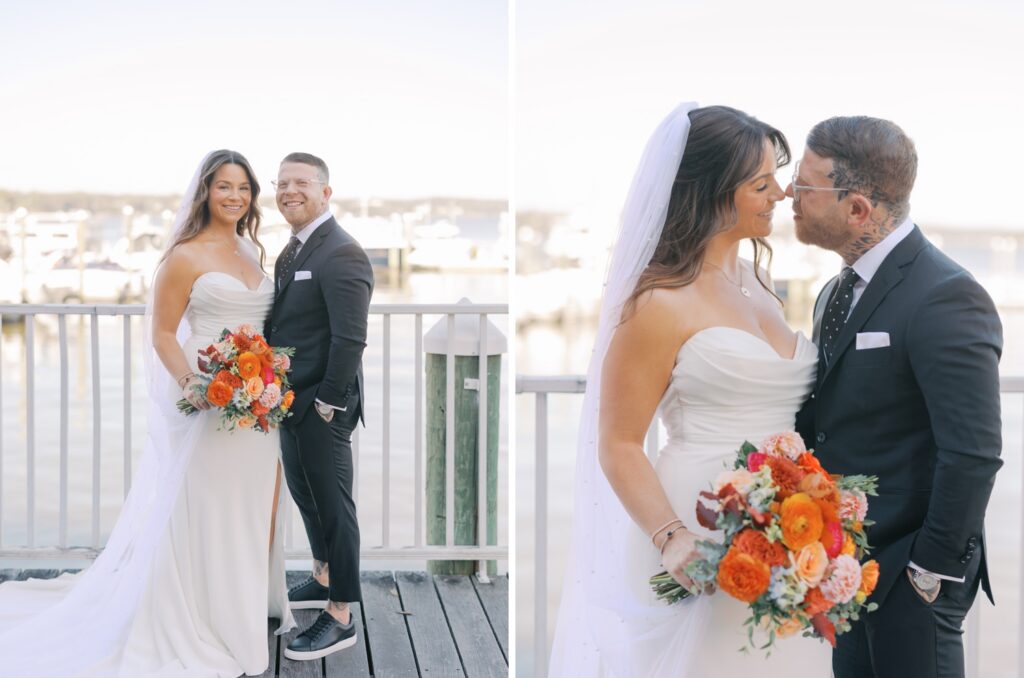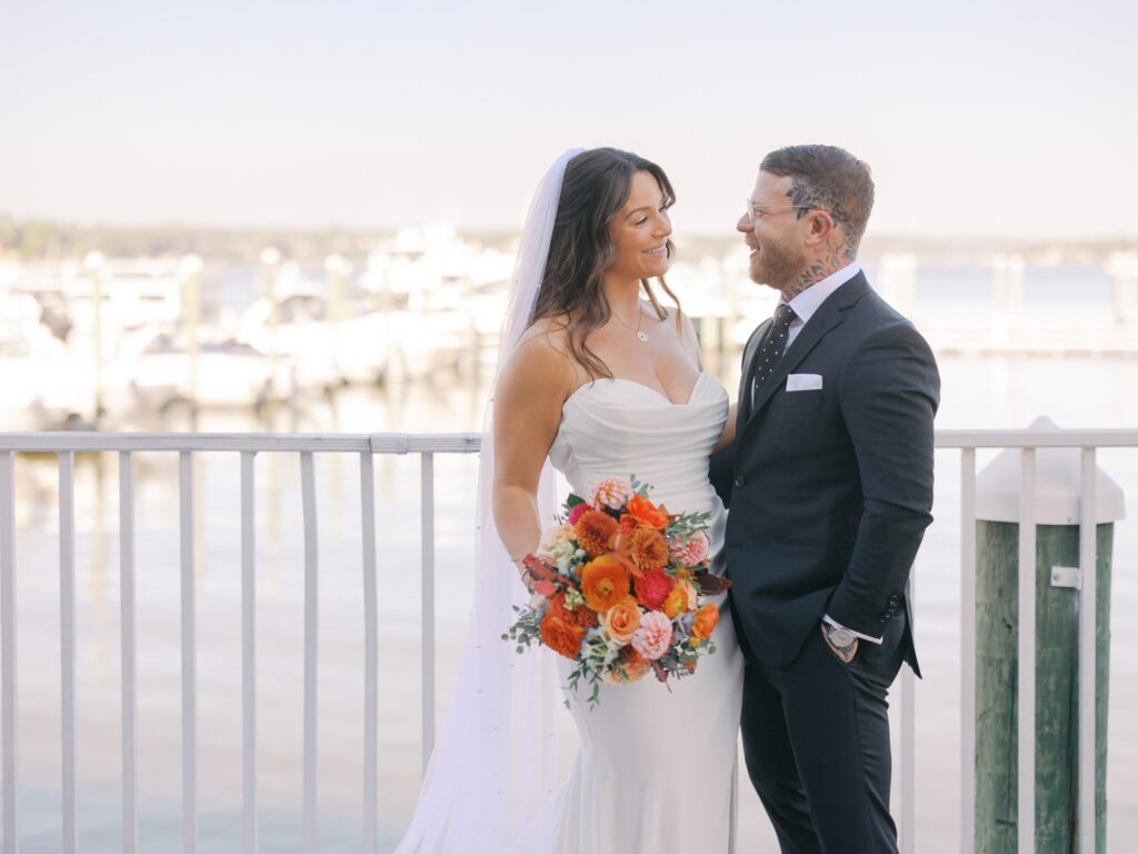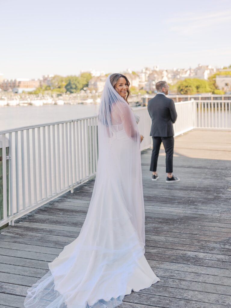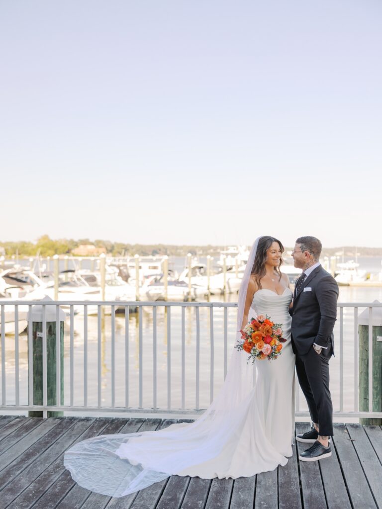 Before the ceremony, Adriana and Marc shared a first look and portraits along the marina behind the Molly Pitcher Inn. The October sunshine created the most beautiful light, and the river added a calm, romantic feel to every photo.