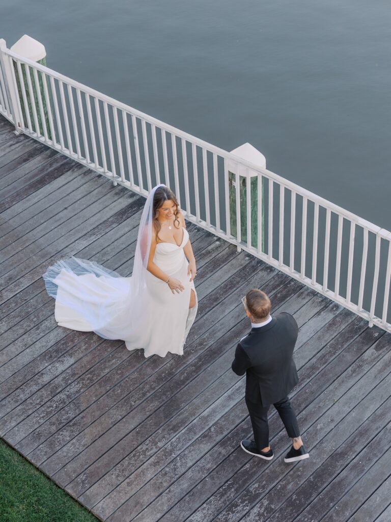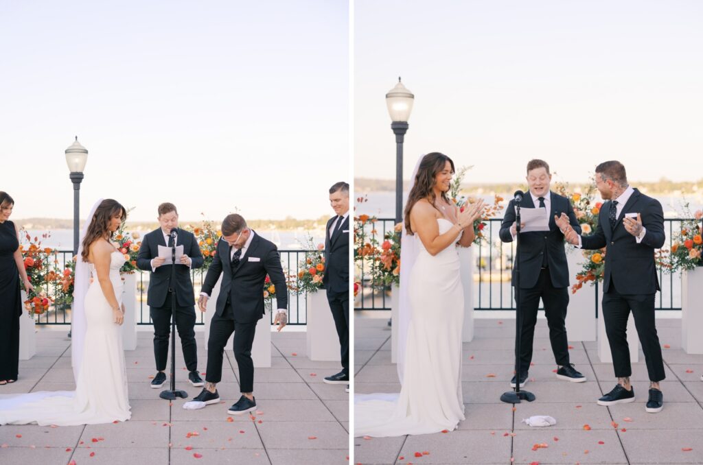 Adriana and Marc’s ceremony was heartfelt and emotional. Standing together with the Navesink River behind them, they exchanged vows in front of the people who matter most to them.
