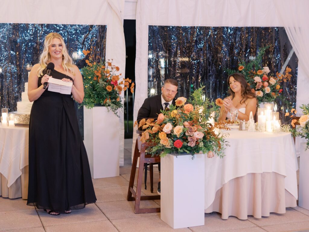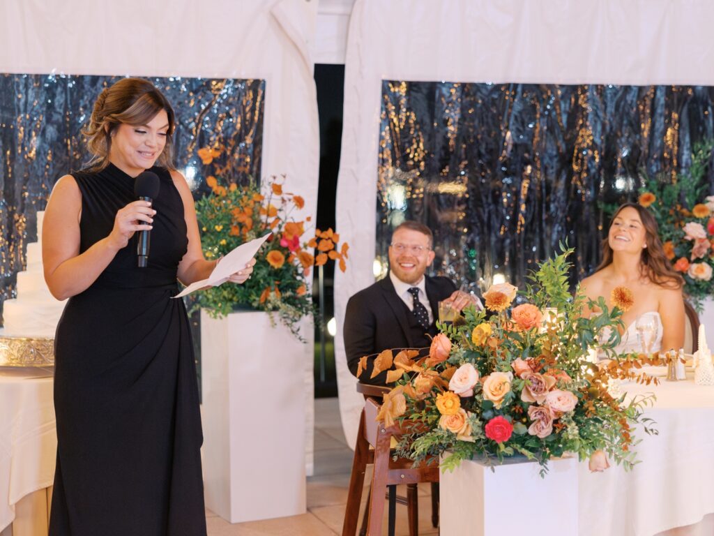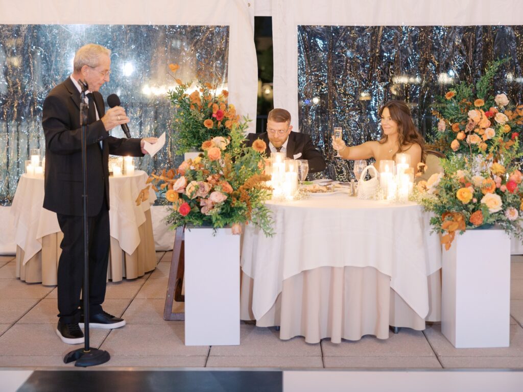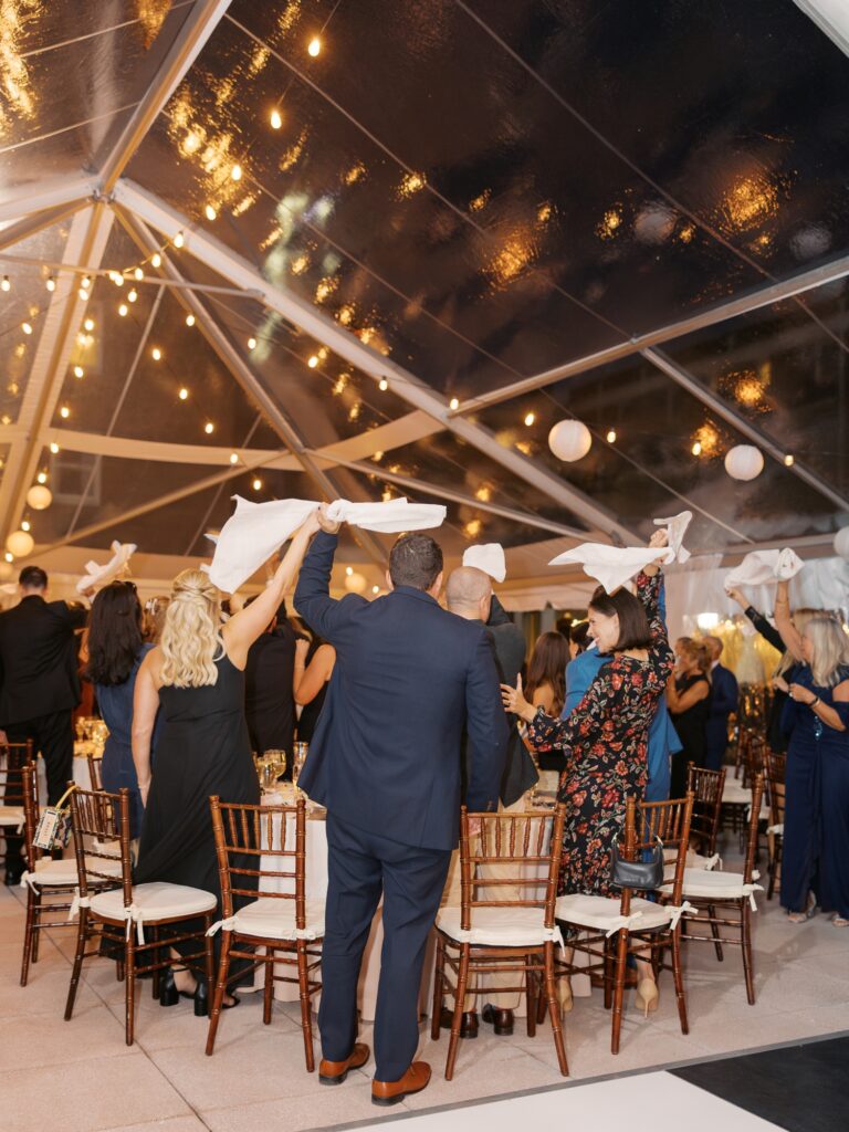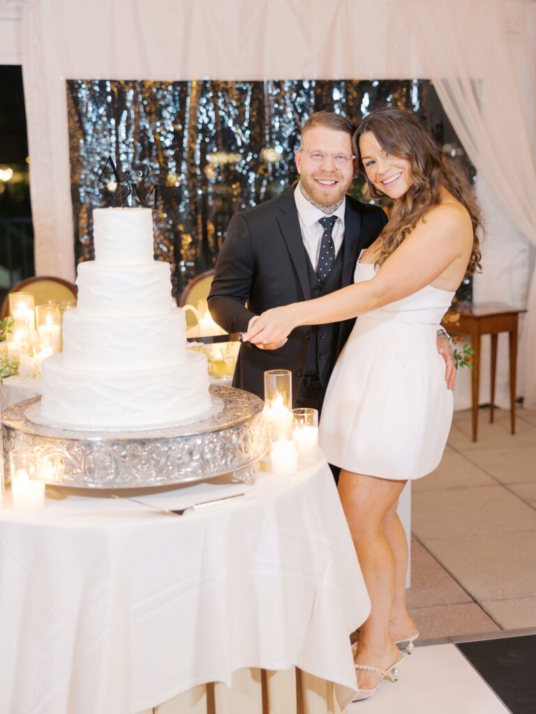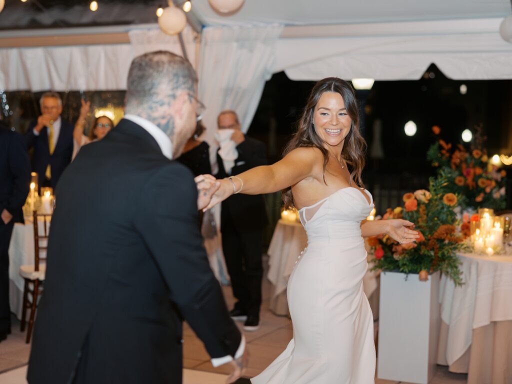 With the help of an event designer, Adriana and Marc celebrated in a tented reception on the back patio of the Molly Pitcher Inn. They shared their first dance, listened to heartfelt toasts, and enjoyed dinner and dancing before heading indoors for a lively after-party on the dance floor.