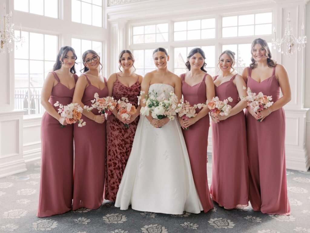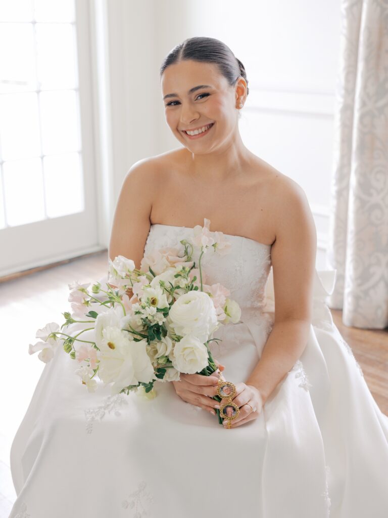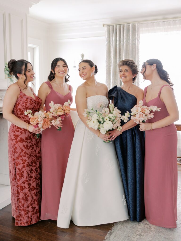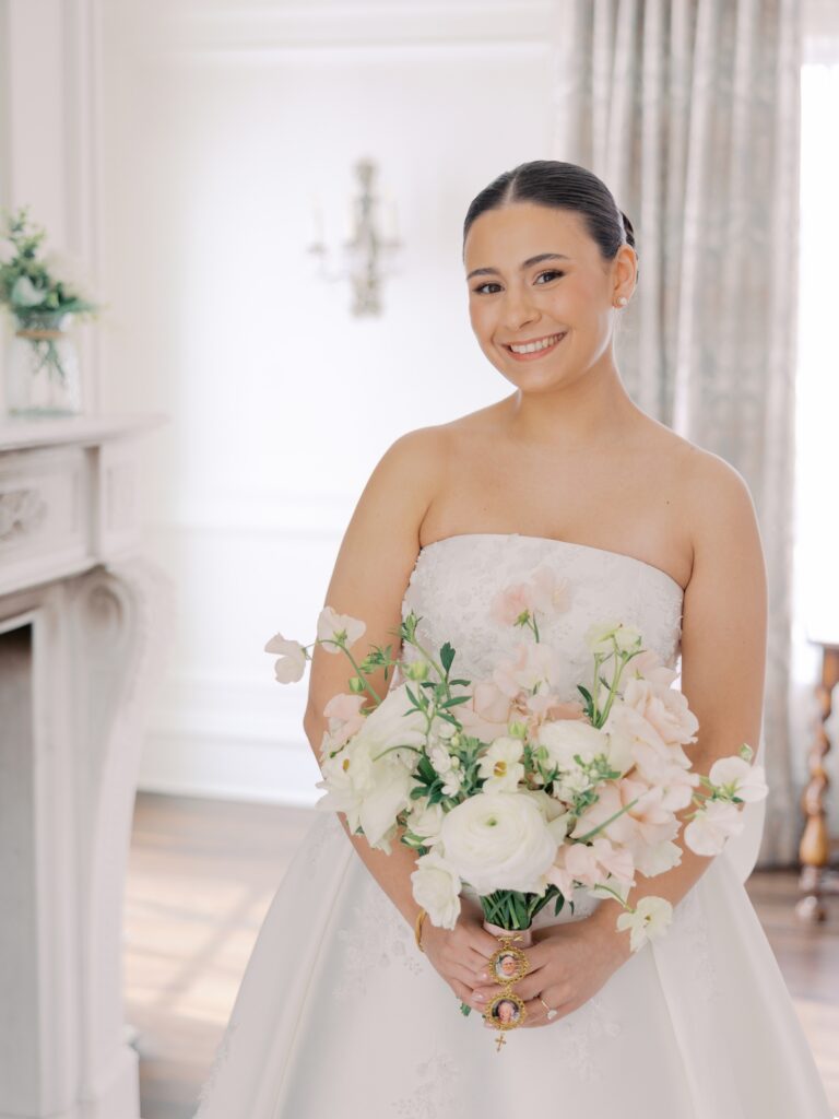 Their day began at The Park Savoy, one of North Jersey’s most elegant estate wedding venues. There, Mariella and her bridesmaids got ready in the bridal suite on site. The room has large windows, which bring in beautiful natural light. As a result, it was the perfect setting for a winter morning. Mariella comes from a big family—she’s one of five siblings. Throughout the morning, her sisters stayed right by her side as she got dressed, helping with final touches before the day officially began.