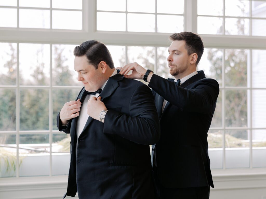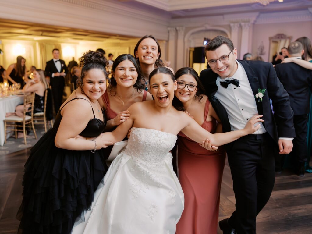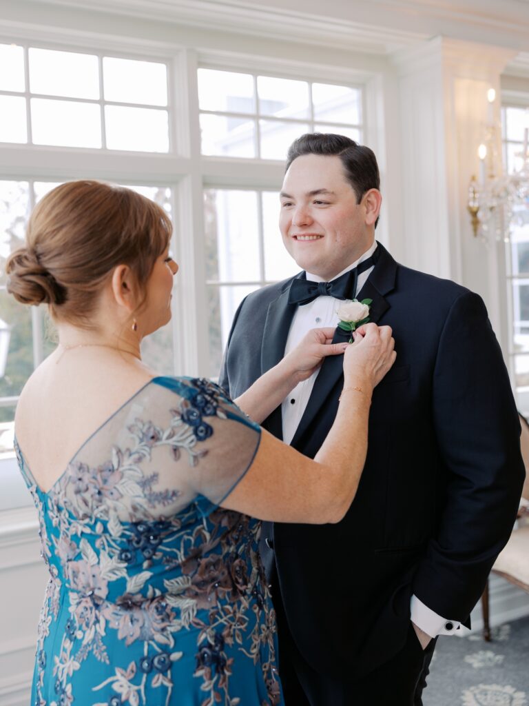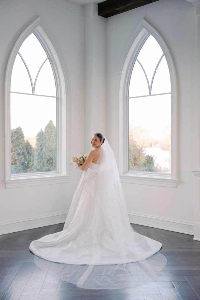 Their day began at The Park Savoy, one of North Jersey’s most elegant estate wedding venues. There, Mariella and her bridesmaids got ready in the bridal suite on site. The room has large windows, which bring in beautiful natural light. As a result, it was the perfect setting for a winter morning. Mariella comes from a big family—she’s one of five siblings. Throughout the morning, her sisters stayed right by her side as she got dressed, helping with final touches before the day officially began.