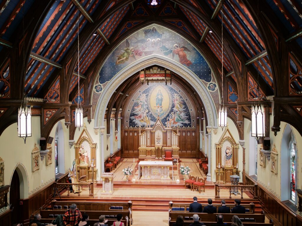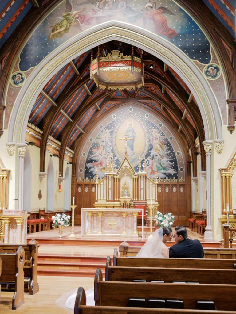 Before leaving the grounds of Park Savoy, we photographed bridesmaids and groomsmen portraits on the estate property. Then, we made our way to the Chapel of the Immaculate Conception on the campus of Seton Hall University. By the time we arrived, the energy of the day felt grounded and focused. Seton Hall is where Mariella and Josh first met as undergraduate students. Therefore, it only made sense as a meaningful place to exchange their vows and begin this next chapter. You can read more about their love story in their engagement session post here.