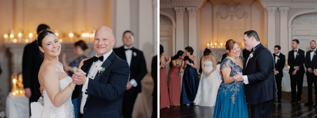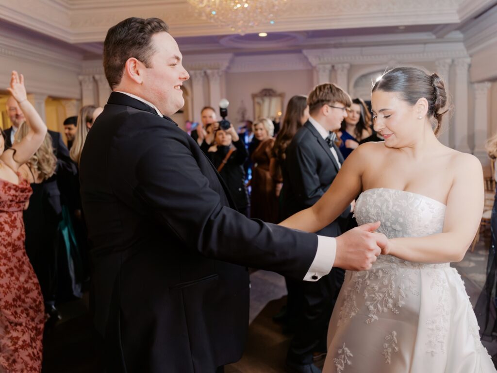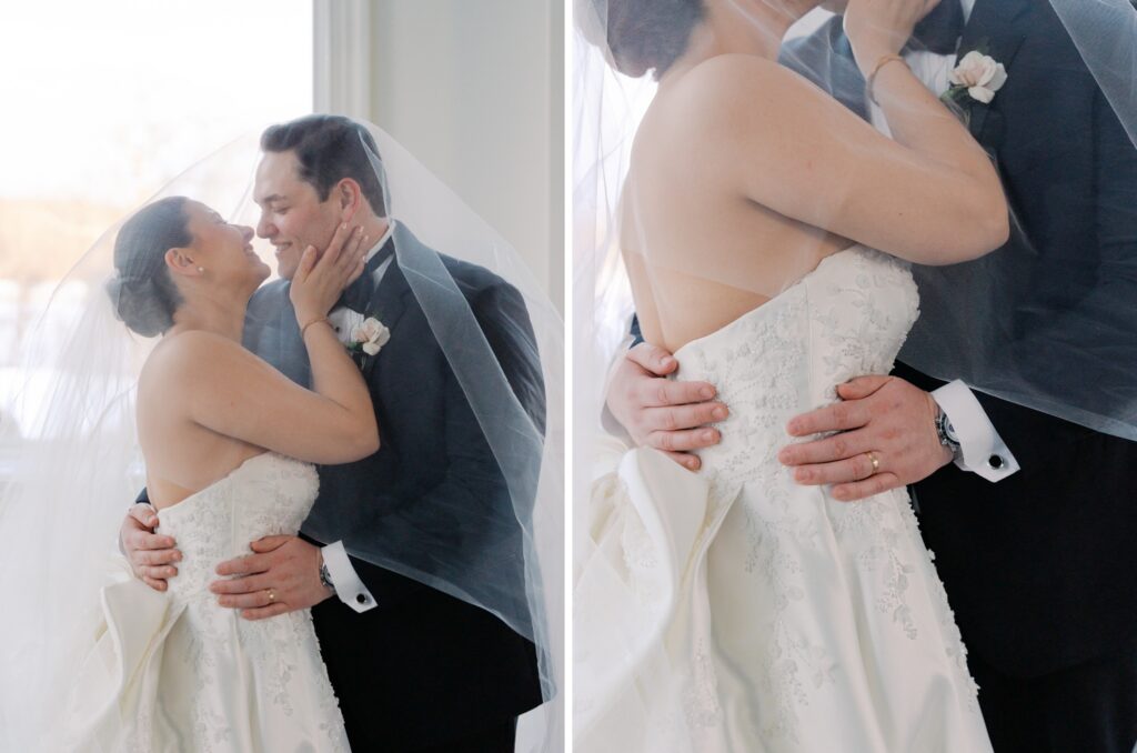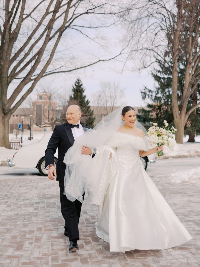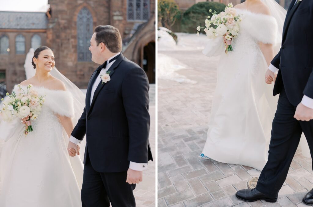 Despite the cold, Mariella and Josh stepped outside for portraits on the Seton Hall campus and later back at Park Savoy. We kept their time outdoors limited while still capturing classic, romantic images at both locations. Even with temperatures hovering around 20 degrees and strong winds, you would never know it from the photos. They were calm, joyful, and completely focused on each other.