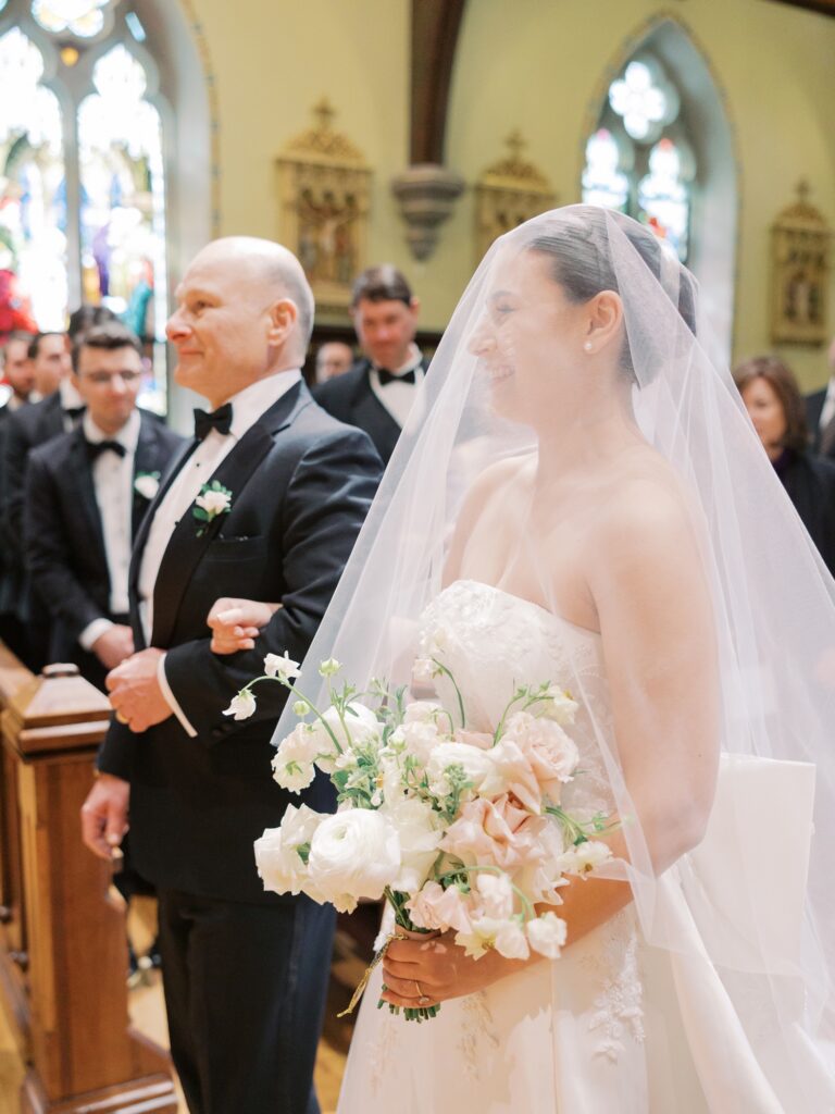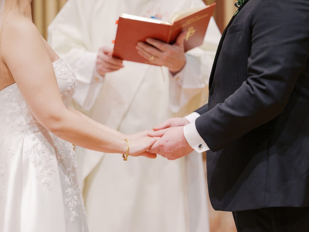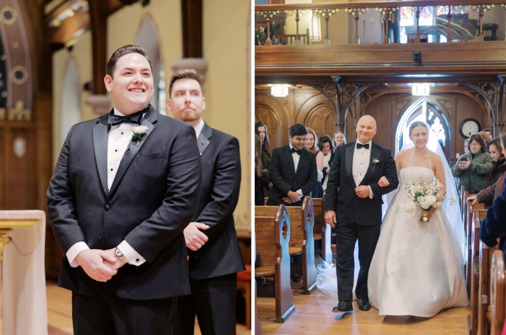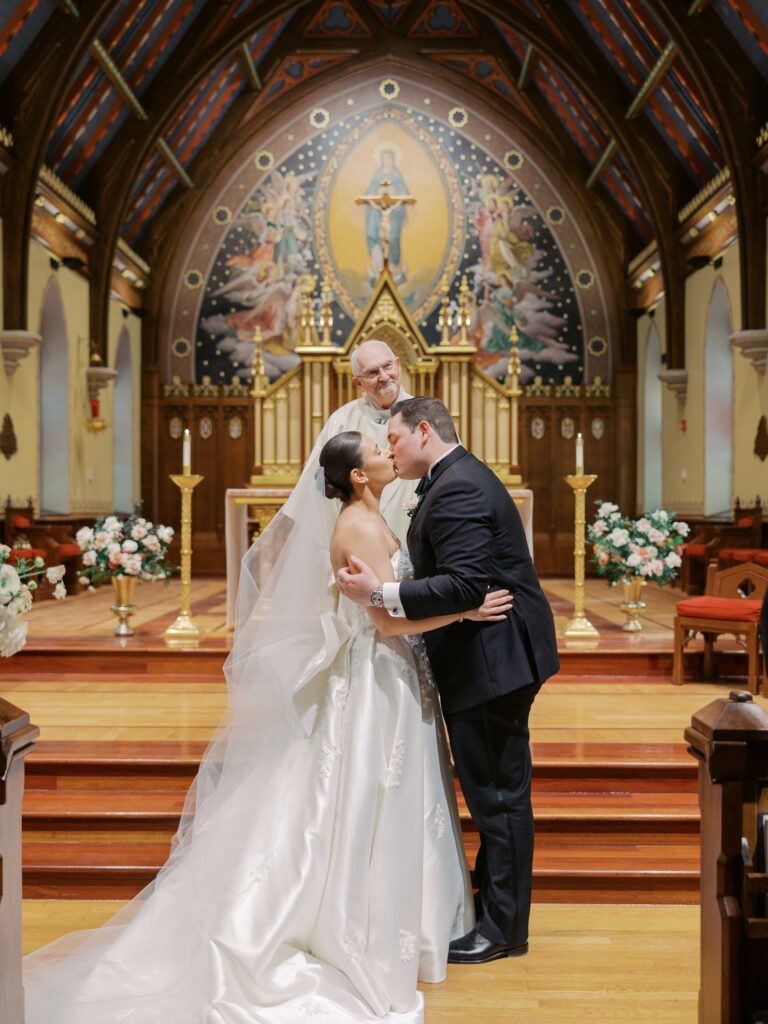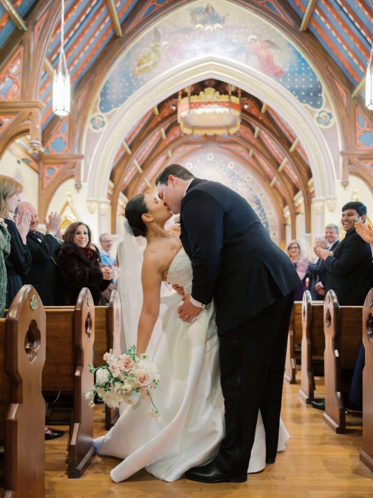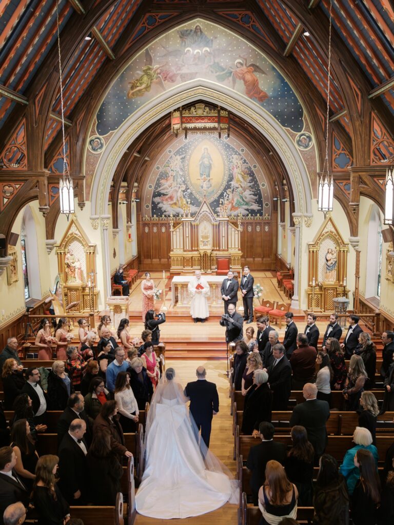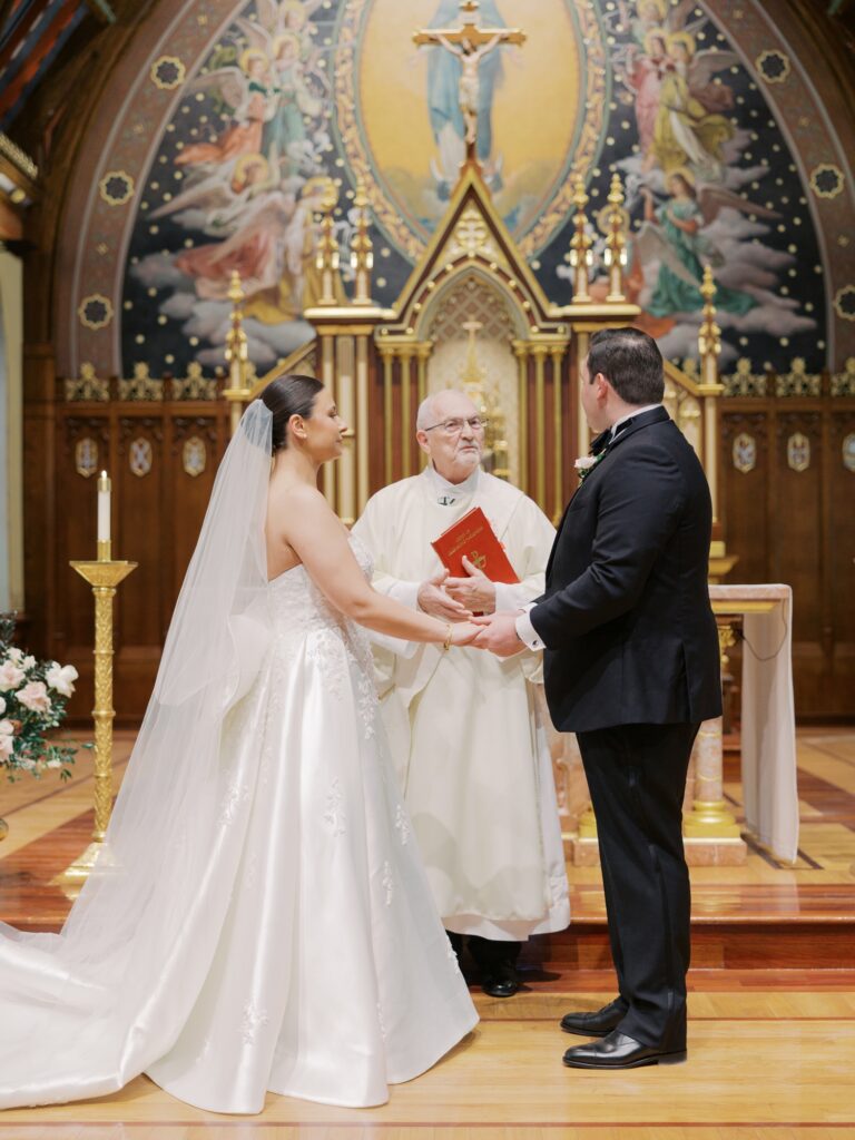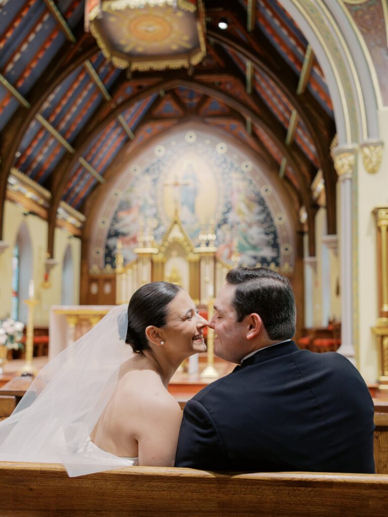 Mariella and Josh chose to see each other for the first time at the altar, so their first look happened when the church doors opened. At that moment, both of them were smiling as Mariella walked down the aisle with her dad. Josh’s grandfather, a deacon, led the ceremony, which made it feel even more personal for their families.