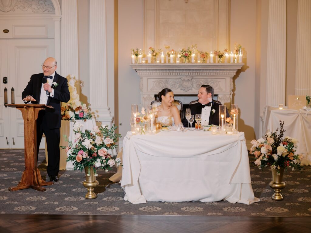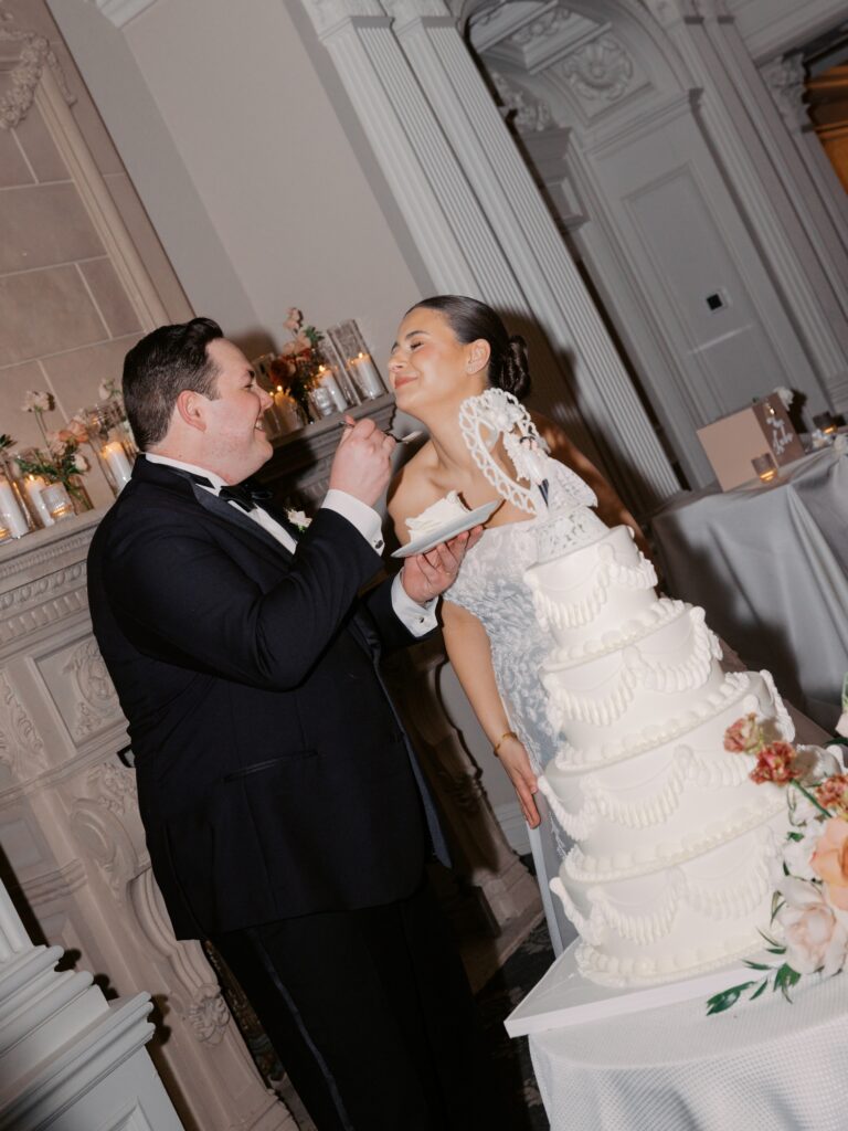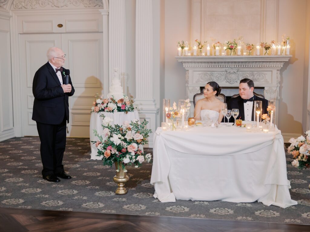 One of the most sentimental details of this Park Savoy wedding reception was Mariella and Josh’s cake topper—a vintage piece from Mariella’s parents’ wedding. Their anniversaries now fall in the same month, just ten days apart, creating such a sweet connection between generations.